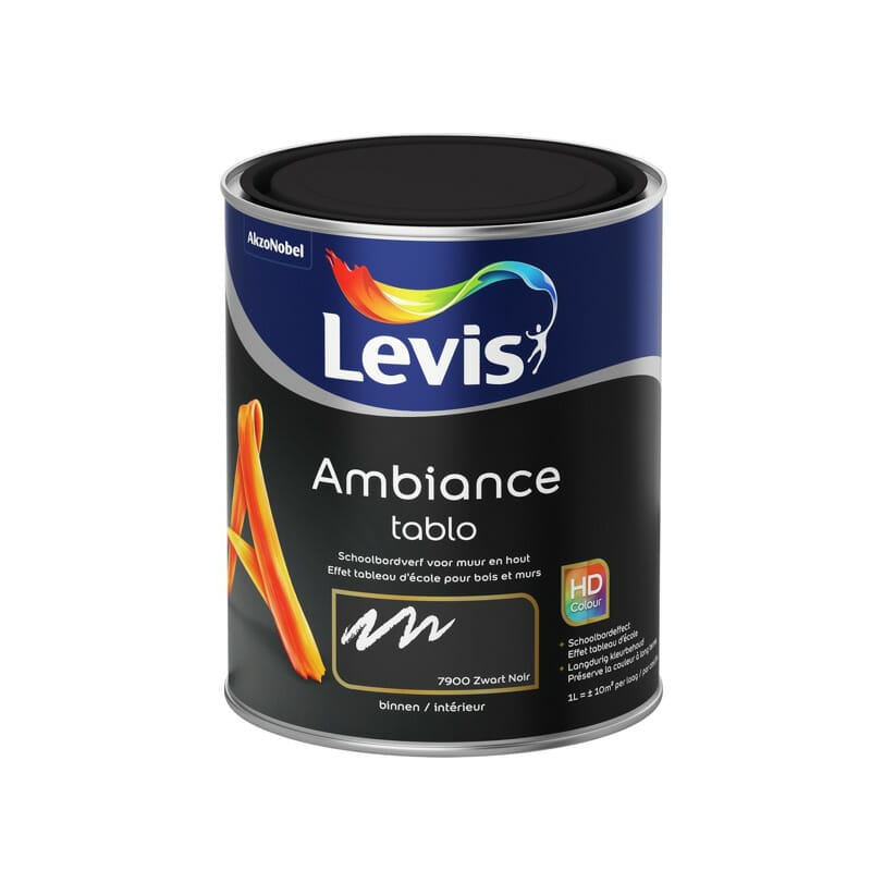 Levis Tablo is een Hoogkwalitatieve extra matte acrylaatverf, beschrijfbaar met krijt. Toepasbaar op hout en muren. Voor gebruik binnen. Schoolbordeffect. Beschrijfbaar met krijt en terug afwasbaar.