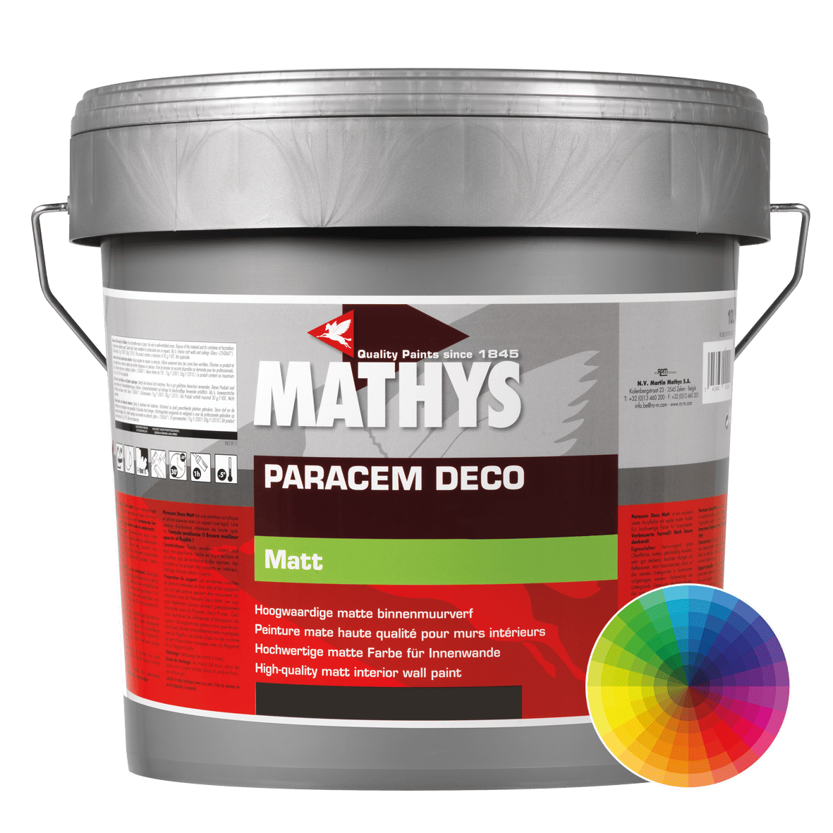 Mathys Paracem Deco Matt is een watergedragen muurverf die speciaal ontworpen is om binnenmuren en plafonds een stijlvolle, matte uitstraling te geven. Deze verf is ideaal als je je interieur een frisse, moderne look wilt geven zonder glans of scherpe glimmende plekken.
